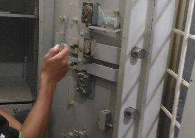 layanan utama yang mencakup diagnosis, perbaikan, dan penggantian komponen yang rusak atau yang tidak berfungsi dengan benar pada brankas.